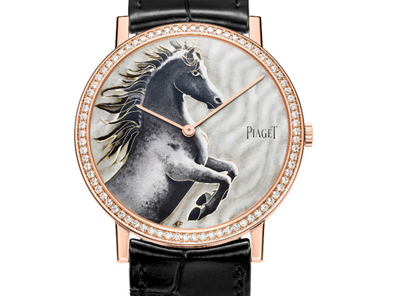 Altiplano 38毫米琺瑯彩繪腕表。世界各地的馬匹當中,伯爵特別傾情于速度與耐力為世稱頌的汗血寶馬,為其優(yōu)雅跳脫的身驅(qū)著迷。才華洋溢的琺瑯大師Anita