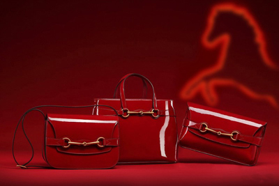 Gucci(古馳)為馬年推出特別系列,包括Bright Bit手提包,小巧肩背包和手拿包,亮漆皮材質(zhì)采用了中國(guó)人春節(jié)最傳統(tǒng)的大紅配色。雖然沒(méi)有出現(xiàn)馬的形象,但品牌著名的設(shè)計(jì)標(biāo)識(shí)之一馬銜扣已經(jīng)足以代表馬年的主題。