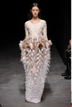 法籍華裔設(shè)計(jì)師殷亦晴(Yiqing Yin)設(shè)計(jì)的2014春夏高級(jí)定制女裝秀日前在巴黎時(shí)裝周上舉行。圖為模特在展示殷亦晴的時(shí)裝作品。