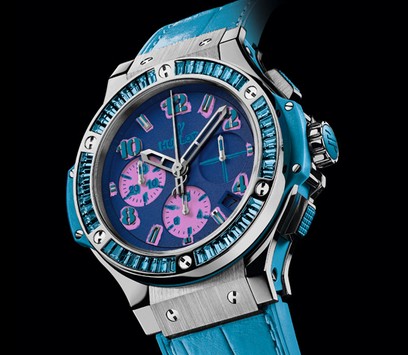 玫瑰粉、幽藍、炫紫、蘋果綠,色彩的爆炸與碰撞完美融合于四款腕表中——色彩斑斕、活力四射,這是對波普藝術(shù)(Pop