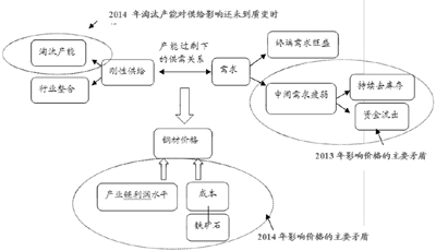 2014年鋼材市場的供需很可能呈現(xiàn)弱平衡狀態(tài),供給和需求均小幅上升,難有超預期表現(xiàn);影響價格的主要矛盾可能落在了成本和產(chǎn)業(yè)鏈利潤水平的變化上,產(chǎn)能過剩的鋼材市場弱勢格局中,市場關注的是成本的支撐以判斷價格的底部,那么礦價的波動很可能會是影響鋼價的主要矛盾。