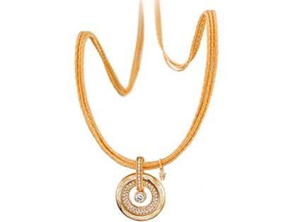 華洛芙全新“真正的喜悅”系列護身符吊墜從兩方面捕獲了佩戴著的心-從容挑選自己深愛的幸運色和19種奇妙的佩戴方式。真正的喜悅護身符吊墜的外環(huán)由活潑時尚的顏色與至純的18k黃金相互輝映,構成華洛芙經典風格的抽象羽翼,同時,也為中心的單顆鉆石和整環(huán)鑲鉆的內環(huán)增加了現代時尚的氣息。中心的獨立鉆石與整環(huán)鑲鉆的內環(huán)都懸掛于一個精致的珠寶卡扣之上。每個護身符環(huán)都用絲綢流蘇裝飾,賦予整個項鏈靈動活潑的韻味和宛如陽光般的溫暖。佩戴者可以在任何時候根據不同的心情改變護身符吊墜的形象,既可以挑選您自己的幸運色,也可以變換為時尚簡約又經典復古的白色琺瑯面,亦或者是選擇閃閃發(fā)光的流蘇吊墜。如此的多面性讓擁有這款護身符吊墜的女性無比幸運。