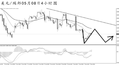美元兌瑞郎4小時圖強動能交替節(jié)奏頻繁,但下跌趨勢不變。短線匯價有一定的上行需求,但想直接升破趨勢線阻力的概率不大,預(yù)計后市仍將以震蕩走弱的節(jié)奏運行。