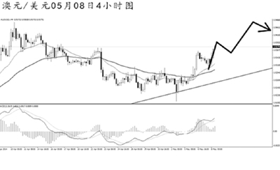 澳元兌美元,短線重新拾得漲勢。4小時圖均線系統(tǒng)已經(jīng)重新轉(zhuǎn)為了向上的排列,MACD顯示多頭動能占優(yōu)。目前需重點關(guān)注前方高點0.9460的阻力,預(yù)計澳元將向此位置發(fā)起沖擊,并且升破的概率偏大。