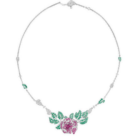 Bagatelle」珠寶系列于2014年推出全新延伸之作,除了在系列里首次加重葉子元素比重以取代過去作品多在荊棘上的著墨外,也以粉紅剛玉等色彩飽和度高的寶石與珍貴白鉆結(jié)合卓越立體工藝,打造動人花朵。
