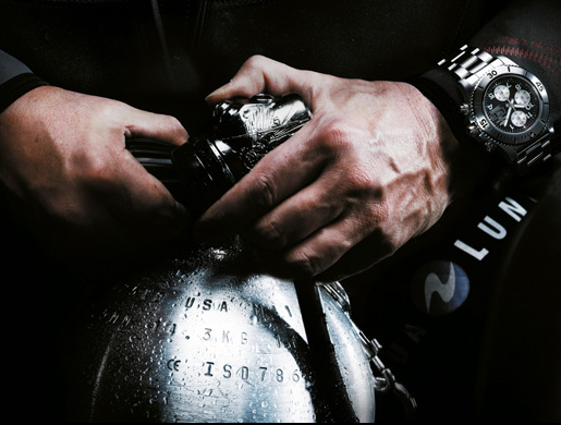 表殼:精鋼;防水性能達500米(1,650英尺/50個大氣壓);旋入式表冠及安全計時按鈕;單向棘輪式旋轉(zhuǎn)表圈;弧面藍寶石表鏡,雙面防眩處理;直徑:44毫米。