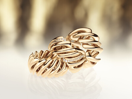 DreamDancer就像一個(gè)雕塑,進(jìn)行著一次又一次的自我重塑。佩戴著她,您可以眼見并感受到她舞動(dòng)的美,然而卻無法看清她是如何72變的。秘密在于:DreamDancer由三個(gè)環(huán)環(huán)相扣的戒指共同組成,每個(gè)戒指都可以自由轉(zhuǎn)動(dòng)。只有戴在手上之后,DreamDancer才會(huì)固定一種姿態(tài),這意味著,DreamDancer在每次佩戴時(shí),都會(huì)稍顯不同。帶有鉆石的DreamDancer更是多出了一個(gè)環(huán),這是對金飾藝術(shù)又一次完美詮釋。