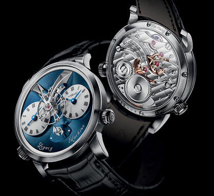Hang)腕表保留了原LM1的所有原創(chuàng)特征,這些特征受19世紀腕表啟發(fā),包括莊嚴徐緩的懸垂式平衡擺輪、可獨立設定的雙時顯示,但同時又蘊含匠心獨具的精妙設計:動力儲存借由一個高拋光的鋁制迷你小人進行顯示。這個小人由中國天才雕塑家夏航所設計,當機芯上滿鏈的時候,這個小人會筆直的坐起來(Mr.