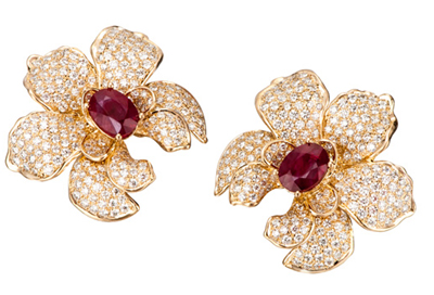 微雕是每款作品的主角,再選用黃金、鉆石和拋光的弧面紅寶石,打造出這批珍貴的珠寶作品