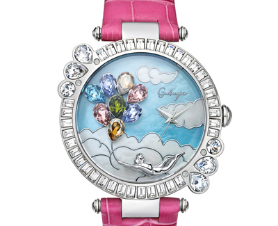 Balloon童話夢(mèng)飛翔」系列,將每個(gè)人小時(shí)候曾幻想過能像小鳥般在蔚藍(lán)天際自由翱翔的夢(mèng)想,栩栩如生的實(shí)現(xiàn)于腕表設(shè)計(jì)上。立體水晶別出心裁地幻化成七彩的小汽球,仿如伴您一起游歷浪漫的花都,遨游藍(lán)天白云的優(yōu)雅景致。只要您細(xì)意望著「Balloon