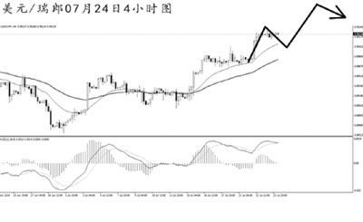 美元兌瑞郎短線的上沖勢(shì)頭十分迅猛。4小時(shí)圖均線系統(tǒng)多頭排列,主客觀趨勢(shì)都向上。雖然短線的漲勢(shì)保持完好,但在有效突破上述阻力之前,暫時(shí)不建議激進(jìn)入場(chǎng)做多。