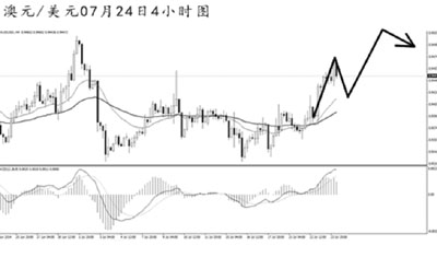 美元兌加元沖高回落后持續(xù)震蕩。4小時(shí)圖的道氏低點(diǎn)支撐在1.0710,匯價(jià)小幅刺破此位置,但均線系統(tǒng)仍然保持依托狀態(tài)。目前需繼續(xù)關(guān)注此點(diǎn)位,若后市順利跌破,匯價(jià)將向1.0620的前方低點(diǎn)一線發(fā)起挑戰(zhàn)。