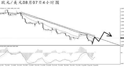 歐元兌美元探底后強力反彈,匯價逐步靠近下降趨勢線的壓制位,道氏高點阻力在1.3445,歐元若想結(jié)束中線的下跌還需繼續(xù)發(fā)力上攻。短線歐元的反彈力度較強,升破趨勢線阻力之后可開始考慮小倉做多。