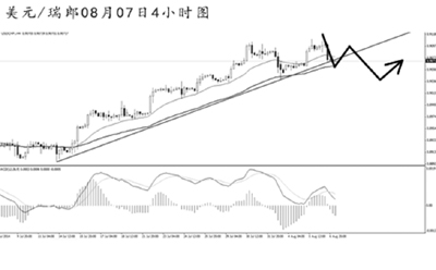 美元兌瑞郎在小幅創(chuàng)出新高之后強力回落,短線匯價的下調(diào)力度較強。美元兌瑞郎的高位盤整節(jié)奏已經(jīng)達到一周,短線空頭力度占優(yōu),預計后市將展開進一步的下行,在跌破上述支撐之前,做空需謹慎。
