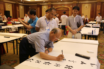這次書畫筆會邀請到的將軍書畫家們都是征戰(zhàn)沙場、為共和國立下豐功偉績的英雄,他們的書畫作品書寫了壯麗的祖國河山,弘揚(yáng)了中華民族偉大復(fù)興的中國夢。他們懂軍事、懂政治、懂藝術(shù),將書畫藝術(shù)推向了一個(gè)高度。在和平年代將軍們將自己對祖國的熱愛融入到書畫藝術(shù)中,與戎馬倥傯之余,將書畫當(dāng)作無言的詩,無言的字,無言的音樂,為中國革命和建設(shè)譜寫了一副又一副壯麗篇章。他們用書畫謳歌我們的黨和國家,對人民進(jìn)行愛國主義教育;他們將書畫作為與廣大官兵溝通的渠道,拉近情感的紐帶,心系官兵,情撒軍營,為提高官兵的軍事素質(zhì)和文化素質(zhì)做出了重大的貢獻(xiàn)。他們海將書畫作為生活的一部分,陶冶情操,提高情趣,構(gòu)建和諧社會,以自己的革命精神、高尚人品為我們樹立了光輝的榜樣。將軍們的書畫造詣之高、氣勢之大、字體之雄,堪稱一絕,書畫優(yōu)美、內(nèi)容豐富,情真意切,聯(lián)通他們的豐功偉績和崇高精神,是當(dāng)代精神文明的一面鮮艷旗幟,弘揚(yáng)了革命軍人愛國主義的精神。