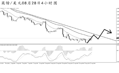 歐元兌美元自低位逐步反彈。4小時圖下跌動能強勁,均線系統(tǒng)壓制排列。短線反彈勢頭已經(jīng)形成,但目前尚沒有構(gòu)筑出良好的次級趨勢調(diào)整。由于匯價的下跌斜率過大,后市仍面臨一定的上調(diào)壓力,但在暴發(fā)強勁的多頭力度之前,入場做多仍需謹慎。