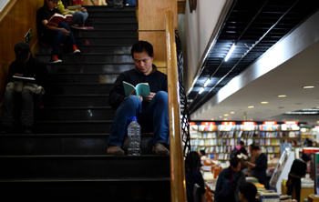 書店工作人員說,每天12點之前都會有許多人來這里讀書,午夜過后雖然人流會相對減少,但也是夜夜不絕。