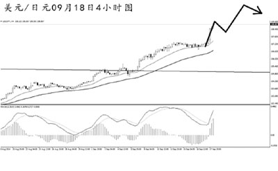 美元兌日元突破105.40的阻力之后一路走高。日線圖K線一路收陽,上方的下一道阻力在110.65一線,匯價(jià)仍有一定的空間可供利用。4小時(shí)圖均線系統(tǒng)多頭排列,道氏低點(diǎn)支撐提高到106.80,但距離現(xiàn)價(jià)仍然較遠(yuǎn)。短線主客觀趨勢(shì)均向上,目前并沒有構(gòu)筑出良好的次級(jí)趨勢(shì)調(diào)整,預(yù)計(jì)后市仍將以走高為主。