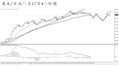 ▲美元兌日元跌破趨勢線之后的高位盤整時(shí)間已達(dá)一周。4小時(shí)圖均線系統(tǒng)仍然保持依托排列,由于匯價(jià)持續(xù)創(chuàng)出新高,MACD發(fā)生了多次角度明顯的頂背離信號(hào)。短線匯價(jià)始終未能再度暴發(fā)多頭動(dòng)能,后市繼續(xù)面臨下調(diào)風(fēng)險(xiǎn)!