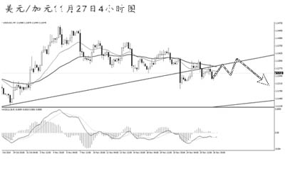 ▲美元兌加元跌破最近一條上升趨勢線之后并未能加速下行。從4小時(shí)圖上看,匯價(jià)的此波下調(diào)夾雜著很多的上漲動(dòng)能,運(yùn)行并不順暢。短線震蕩市特征十分明顯,目前操作此貨幣仍然具有較高的風(fēng)險(xiǎn)。
