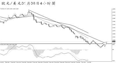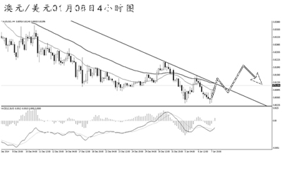 英鎊兌美元保持緩步走低的節(jié)奏。從日線圖上看,新年開盤以后,價格下跌的幅度已超過500點,MACD底背離信號明顯,但由于下降趨勢線未被升破,效果相對有限。從4小時圖上看,匯價調(diào)整過后再創(chuàng)新低,均線系統(tǒng)重新形成完好的空頭排列。短線下跌力度雖然有所減弱,但在展現(xiàn)出強勁的多頭動能之前,需繼續(xù)對英鎊抱以看空思路。