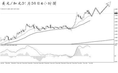 美元兌瑞郎短線持續(xù)走高。日線圖K線連續(xù)收陽,上漲斜率逐漸加大。MACD紅柱明顯,顯示多頭動能十分強勁。4小時圖均線系統(tǒng)保持完好的多頭排列,由于匯價已經(jīng)回到了1.0000的整數(shù)關(guān)口上方,上漲空間被進一步打開,預計后市將繼續(xù)走強。在跌破最近一條的上升趨勢線之前,暫不考慮做空。