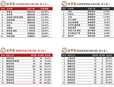不過,分析師的薦股成績并沒有隨大盤的震蕩走弱而降低,1月分析師研究能力排行榜前十的分析師,推薦股票在20日短線評(píng)測(cè)中最高漲幅均高于120%,與上月不相上下。
