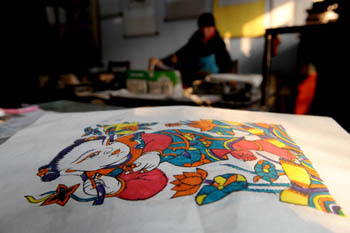 國家非物質(zhì)文化遺產(chǎn)——河南省開封市朱仙鎮(zhèn)木版年畫是中國木版年畫的鼻祖,是中國古老民間藝術(shù)精華,它源于唐,興于宋,鼎盛于明清。明末清初,朱仙鎮(zhèn)生產(chǎn)木版年畫的作坊達300余家,年銷量幾千萬張。春節(jié)臨近,河南省開封市朱仙鎮(zhèn)幾十家木版年畫作坊也正抓緊時間制作年畫,供應(yīng)節(jié)日市場。