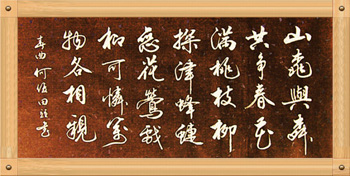 “我就是要規(guī)規(guī)矩矩地按照傳統(tǒng)的套路走,在秉持傳統(tǒng)中不斷升華自己、改造自己和完善自己。藝術(shù)水平如何,應(yīng)由社會大眾來評說。搞藝術(shù)的都是專業(yè)人士,而服務(wù)的對象又多是圈外人士,如果圈外人都認(rèn)可你的書法,就證明你的字已被認(rèn)可。歷史最公平,史上留下的書畫大家的作品,字體都非常漂亮,若是嘩眾取寵,肯定流傳不開!焙慰√锸挚粗貢ǚǘ,不求書法之怪奇,力求書法之俊美。其字體婉態(tài)研華、雋爽明麗,穩(wěn)而不俗、險而不怪、老卻不枯、潤也不肥,化古而出新;其結(jié)體寬博而又氣勢恢宏,骨力遒勁而又氣概凜然,疏密有致而又氣韻生動,大有“點如墜石,畫如夏云,鉤如屈金,戈如發(fā)弩,縱橫有象,低昂有態(tài)”之絕妙。其書法亦剛亦柔,時重時輕,或虛或?qū),不激不厲,欹正相生,章法意境全在其中?BR> 有耕耘,就有收獲。何俊田書法作品曾先后四次入選中國書協(xié)舉辦之國展,其書法作品刻錄于我國26個省(市)碑林、碑廊或人文勝地;被境內(nèi)外眾多藝術(shù)館、博物館收藏;被作為國禮,贈送給烏克蘭前總統(tǒng)克拉夫丘克。何俊田多次應(yīng)邀訪問日本、韓國、加拿大、新加坡及港、澳、臺地區(qū),進(jìn)行書法藝術(shù)交流。據(jù)業(yè)內(nèi)藏家說,何俊田的10米楷書長卷《弟子規(guī)》以10.9萬元成功拍賣后,時隔一年,其6平尺楷書《愛蓮說》又以10萬元成功拍出,其書法作品具有不錯的收藏價值。