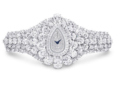 格拉夫更巧用匠心,把瑰麗優(yōu)雅的鉆石腕表結(jié)合在手鐲內(nèi),成為閃爍無(wú)匹的珠寶腕表。