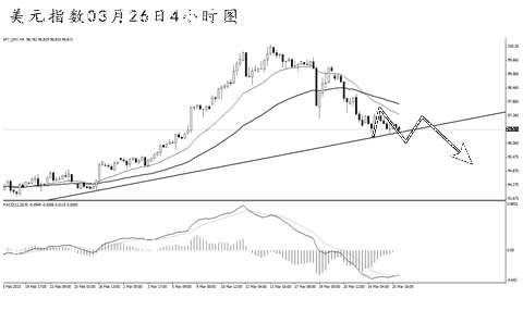 美元指數(shù)持續(xù)下行挑戰(zhàn)趨勢線支撐。從日線圖上看,價格自高位回落,但上升趨勢線和均線系統(tǒng)的依托作用完好,美元指數(shù)整體的漲勢仍在延續(xù)。4小時圖MACD顯示空頭動能仍然略占優(yōu)勢,在跌破趨勢線之前,下跌空間相對有限。短線的下行力度有所減弱,美元指數(shù)面臨一定的反彈需求,但最終選擇向下突破繼續(xù)下調的概率偏大。