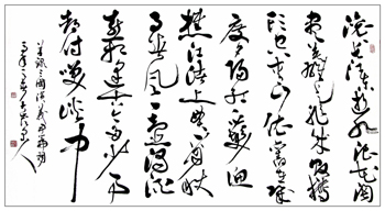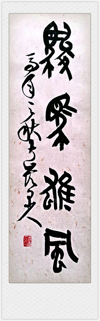 運筆或順或逆,或潤或澀,或俯或仰,或放或收,徘徊且馳騁,逐漸形成了自己筆法剛?cè)嵯酀?jì),形體方圓兼?zhèn),線條瀟灑恣肆,布局嚴(yán)謹(jǐn)沉穩(wěn),章法氣脈貫通,意境高遠(yuǎn)宏闊的藝術(shù)特色。從而,他完成了由羨書、習(xí)字到精研深悟的過程,并靠著自己的勤奮與靈氣,一步一個腳印地接近自己對書法藝術(shù)追求的目標(biāo),一次次艱難而充滿自信地圓著自己人生的夢……