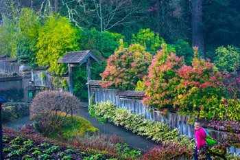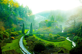 第一次來到位于加拿大西部維多利亞的布查花園時,是在十二月的冬日,只見園內(nèi)一派茵綠。其中的“下沉花園”,也是最主要的一塊園區(qū),好似山間盆地,四周峭壁環(huán)抱。當時正值雨后,云煙繚繞,清風蕩漾,靜謐幽深,層碧疊翠。此時,我真不知身在何處:似是陶淵明筆下的世外桃源,但卻游人如織,猶如車水馬龍;若是金庸小說中游俠出沒的深山,卻又如此平和、安寧。我被這奇景所震撼。