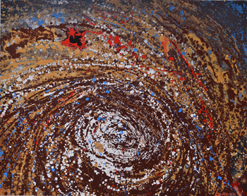在這場藝術(shù)的大爆炸中,一切都驚人的迭代著,一切都將被深刻地改變。而趙旭的繪畫卻寂然不動,仿佛一切都停留在大爆炸的第一秒鐘!对茍D》系列是這樣,在印尼海嘯中所激發(fā)出《星云》系列也是這樣,所有的形式都來自于科技觀測所能獲得的關(guān)于外部宇宙的圖像,但所有的形式都曾經(jīng)真真切切地存在于由文明自身所創(chuàng)造的藝術(shù)史中,趙旭迫使我們在今天重新看到自身精神內(nèi)部與外部宇宙之間相互連接的隱喻。那些翻滾的熱浪,輻射和粒子濃湯,吞噬或創(chuàng)造萬有。它們方生方死,方死方生,毫不以人類的自我意志為轉(zhuǎn)移,但另一方面,它就是人類社會本身的形象。