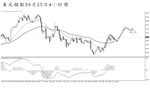 美元指數(shù)強(qiáng)力反彈之后持續(xù)調(diào)整。從日線圖上看,美元指數(shù)仍然圍繞均線反復(fù)穿越,下方強(qiáng)勁支撐在93.20,跌破此點(diǎn)位之前,中線上仍可積極看漲。從4小時圖上看,經(jīng)過連續(xù)的陽線坐收,MACD已進(jìn)入到多頭動能充盈的階段。美元指數(shù)短線正在對此前的上漲進(jìn)行修正,目前可看成4浪調(diào)整,預(yù)計后市仍有繼續(xù)走高的動力,逐步向96.85一線發(fā)起沖擊。