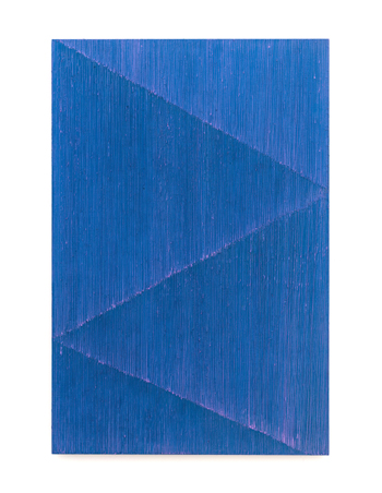 ▲遲群 《三條線-亮粉藍》 150x100cm 布面油畫 2014 |