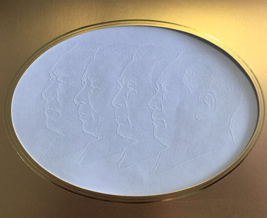 特別要提出的是,上世紀(jì)七十年代末期,當(dāng)時對10元面額(大團(tuán)結(jié))的鈔券需求特別強(qiáng)烈,已形成了應(yīng)用缺口。經(jīng)過中國人民銀行批準(zhǔn),印制10元券的整版規(guī)格從原來的24K(整版24單小張聯(lián)接)改為35K(整版35單小張聯(lián)合),這樣,可以在水、電、汽消耗基本不變的情況下提高產(chǎn)品的生產(chǎn)產(chǎn)量約百分之五十左右。這對當(dāng)時國民經(jīng)濟(jì)的發(fā)展是個極大的促進(jìn)。但是鈔票鈔券紙的水印位置有了根本的變化,由原來的豎向排列改為橫向排列,由于造紙機(jī)生產(chǎn)過程中紙張縱向延伸,橫向收縮,原來的模具已不能使用,必須重新制作一個新的變形方向的模具,而且生產(chǎn)出來的水印(天安門放光芒)要與原來的效果一致。這是一個技術(shù)性很強(qiáng)并且制作難度很大的工作任務(wù)。