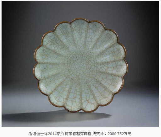 雖然古瓷市場的熱點(diǎn)目前仍在明清瓷器,但以宋瓷為代表的高古瓷器低迷的市場狀態(tài)正在逐年改變,精品面世屢屢振奮市場。2014年香港蘇富比春拍一件“北宋定窯劃花八棱大盌”以1.16億元成交創(chuàng)造了宋代瓷器的世界拍賣紀(jì)錄。今年4月的香港蘇富比又推出一件“南宋官窯青釉八方弦紋盤口瓶”,以9190萬元拍出。低價(jià)位如今年香港佳士得春拍,估價(jià)30-50萬港元的元明哥窯盤亦爆冷以880萬港元(人民幣704.88萬元)的高價(jià)成交。保利2015春拍,13世紀(jì)乾隆御題官窯貫耳小壺747.5萬元成交。