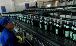 工人正在青稞啤酒生產(chǎn)線上工作。本報(bào)記者:王攀