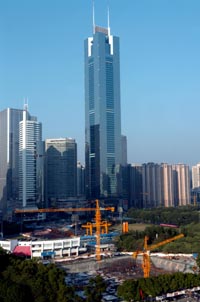 位于廣州市天河區(qū)商業(yè)旺地的工地正在施工。 本報(bào)記者:壯錦