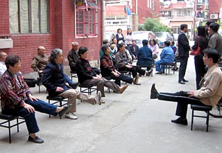 | 上海用“健康經(jīng)濟(jì)學(xué)”破解看病貴、看病難問題。圖為上海市靜安區(qū)南京西路街道的老人們在練習(xí)“平衡訓(xùn)練操”。新華社發(fā) |