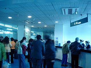 | 幾乎每天早晨,北京宣武等大醫(yī)院掛號廳都擠滿了各地?fù)韥砜床〉幕颊。本報記?