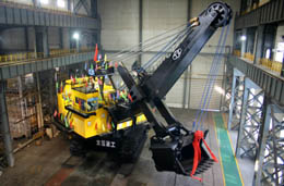 1月26日,國內(nèi)首臺(tái)礦用55立方米挖掘機(jī)在山西太重集團(tuán)下線,這是我國2000萬噸級(jí)以上大型露天礦成套設(shè)備中的關(guān)鍵設(shè)備,具有完全自主知識(shí)產(chǎn)權(quán),可滿足世界上所有露天礦山的采掘條件。新華社記者:武敵