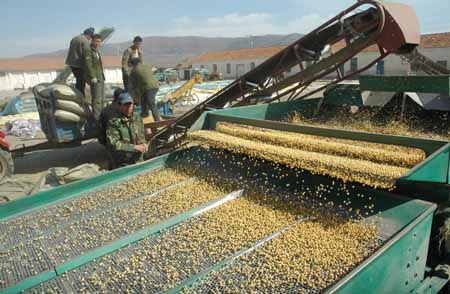 幾位農(nóng)民在中央儲備糧牡丹江直屬庫(林口縣)建堂糧庫國儲糧大豆收購現(xiàn)場交售大豆。新華社發(fā)(張春祥攝) | 2008年我國玉米大豐收,玉米總產(chǎn)量高于消費(fèi)量,在金融危機(jī)影響下,玉米消費(fèi)在加工行業(yè)、飼料行業(yè)及出口方面都不順暢,玉米消費(fèi)需求不旺。專家認(rèn)為,如果今年東北玉米繼續(xù)豐收,國內(nèi)玉米供應(yīng)將出現(xiàn)階段性過剩風(fēng)險(xiǎn),陳化糧的概念可能再次出現(xiàn)。