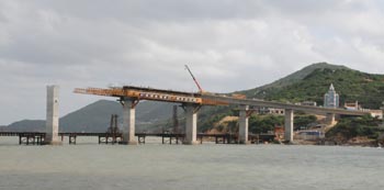 上圖:正在鋪設橋面的平潭海峽大橋。