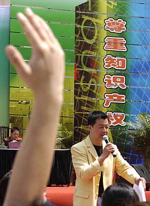 4月25日,為紀(jì)念“4·26”世界知識(shí)產(chǎn)權(quán)日,南京市在新街口商業(yè)街廣場(chǎng)舉行知識(shí)產(chǎn)權(quán)知識(shí)競(jìng)賽,參賽的不僅有來(lái)自企業(yè)、學(xué)校、街道、部隊(duì)的代表隊(duì),許多圍觀市民也踴躍加入到比賽中來(lái)。 |