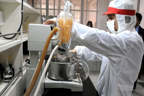 漳州市現(xiàn)已投產(chǎn)開(kāi)業(yè)的臺(tái)資企業(yè)逾1100家,實(shí)際到資約53億美元。圖為漳州大型臺(tái)農(nóng)企業(yè)———東海冷凍食品有限公司的工作人員在農(nóng)殘檢測(cè)中心實(shí)驗(yàn)室內(nèi)進(jìn)行檢測(cè)工作。新華社記者