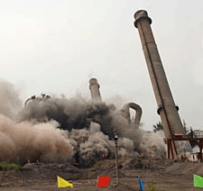 | 2007年9月5日,山東炸響拆除小火電“全國第一爆”。山東省微山湖煤電公司8臺燃煤小火電機(jī)組的主廠房和兩座煙囪被爆破拆除。 |