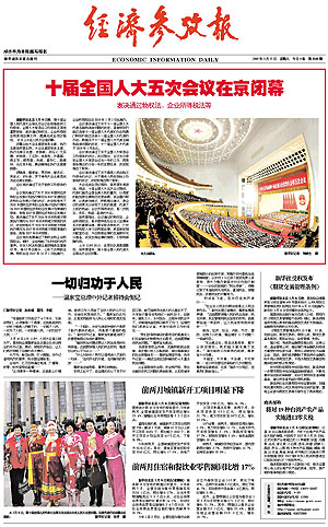 | 2007年:審議通過(guò)《物權(quán)法》 | | --------------------------------------- | | 2007年3月17日《經(jīng)濟(jì)參考報(bào)》頭版頭條刊登了十屆全國(guó)人大五次會(huì)議閉幕的消息,突出報(bào)道了大會(huì)通過(guò)《物權(quán)法》和《企業(yè)所得稅法》。而事實(shí)上,本報(bào)在16日就已對(duì)兩部法律的修改情況做了大篇幅的報(bào)道。歷時(shí)13年的制定過(guò)程,經(jīng)過(guò)全國(guó)人大及其常委會(huì)的多次審議,從起草到修改再到正式頒布實(shí)施,《物權(quán)法》一直受到全社會(huì)的普遍關(guān)注。因?yàn)椤段餀?quán)法》的制定,既涉及國(guó)家的基本經(jīng)濟(jì)制度,又關(guān)系廣大人民的切身利益。 |