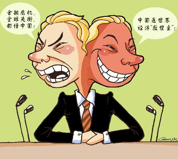 金融危機(jī)發(fā)生后,某些西方國(guó)家的政要、媒體經(jīng)常發(fā)表關(guān)于中國(guó)的言論,有“獨(dú)秀”或“救世”之說(shuō),也有“責(zé)任”之論……